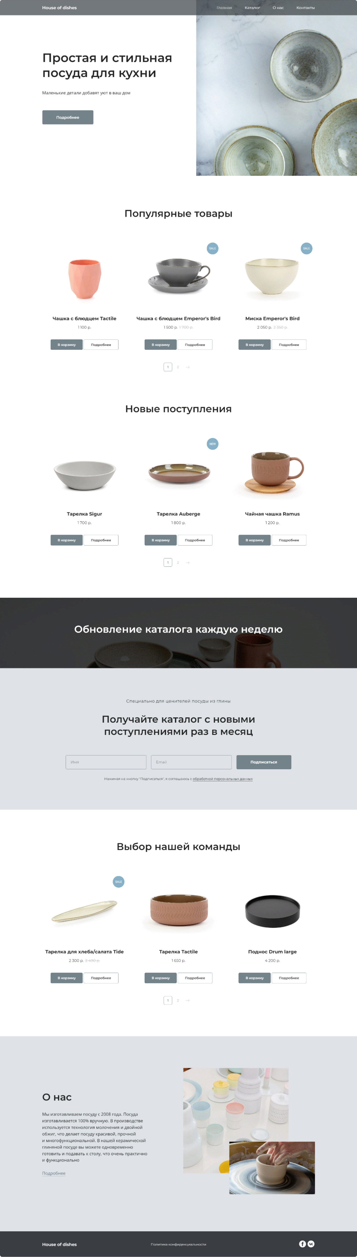 Я разработала адаптивный сайт магазина посуды из глины House of Dishes, на котором представлен каталог товаров, подключены корзина, избранное, формы оплаты.